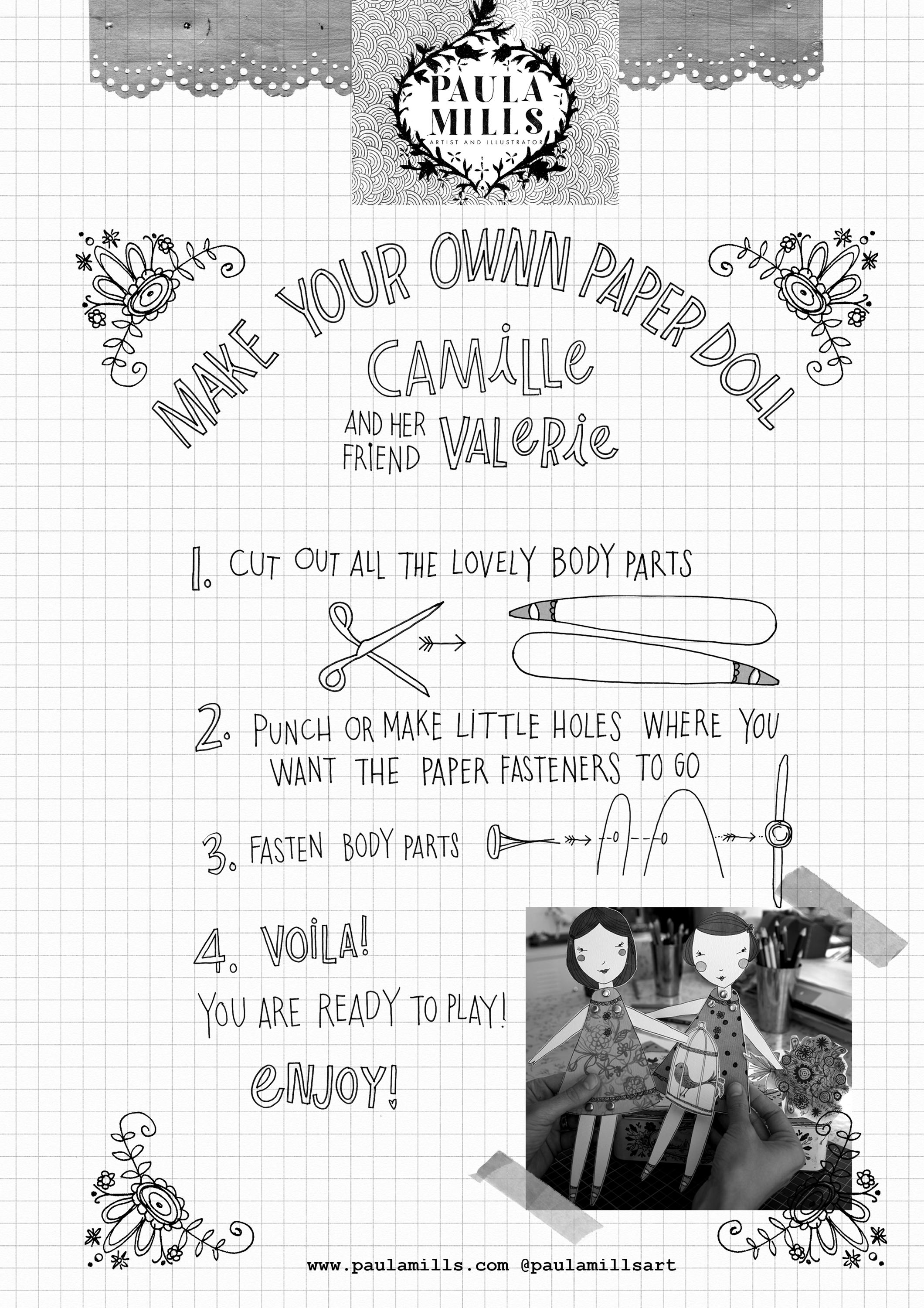 Here is lovely Camille and her best friend Lolo. These girls love flowers, birdies, making things and having fun. Bring a touch of imagination to playtime with these whimsical printable paper dolls, illustrated by Paula Mills. Designed to spark creativity and quiet moments of fun, this DIY craft turns a simple sheet of paper into hours of storytelling magic.